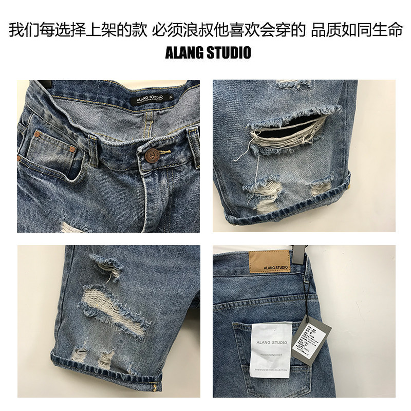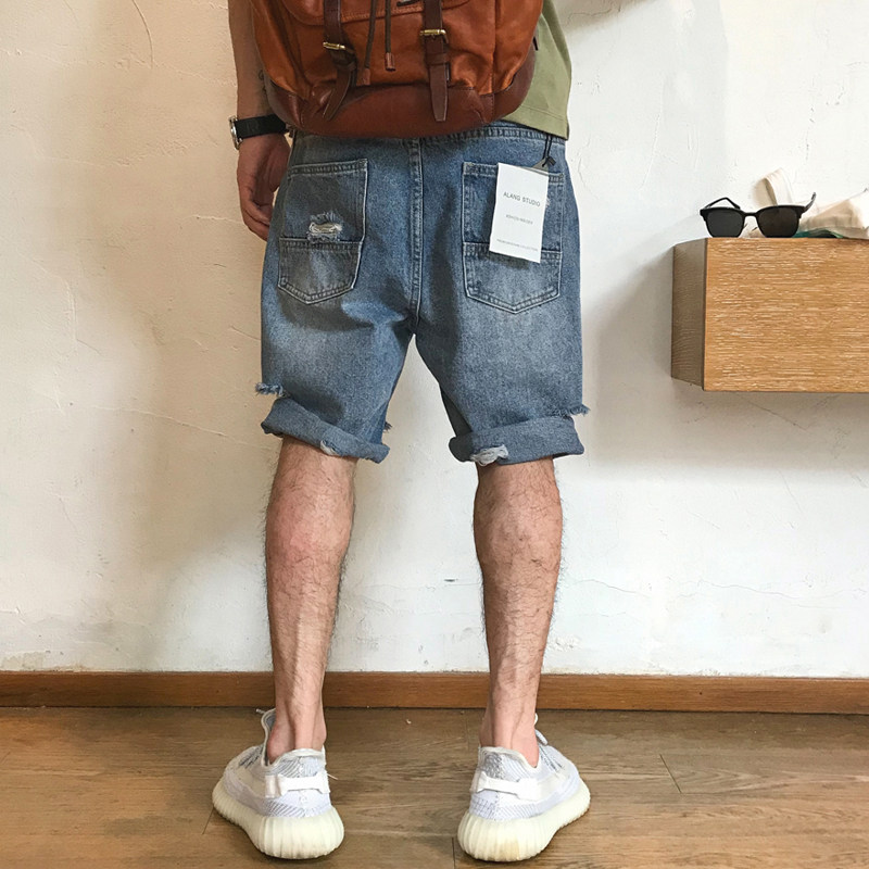 Xu Tailang 2021 summer original homemade trend ins heavy industry washed hole casual men's straight denim shorts