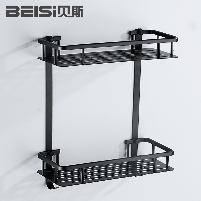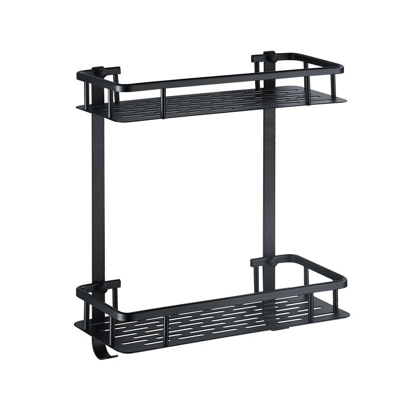 Perforated Bathroom Shelve Makeup Room Double shelf Contained Toilet Bathroom Wall-mounted Space Aluminum Black Nordic