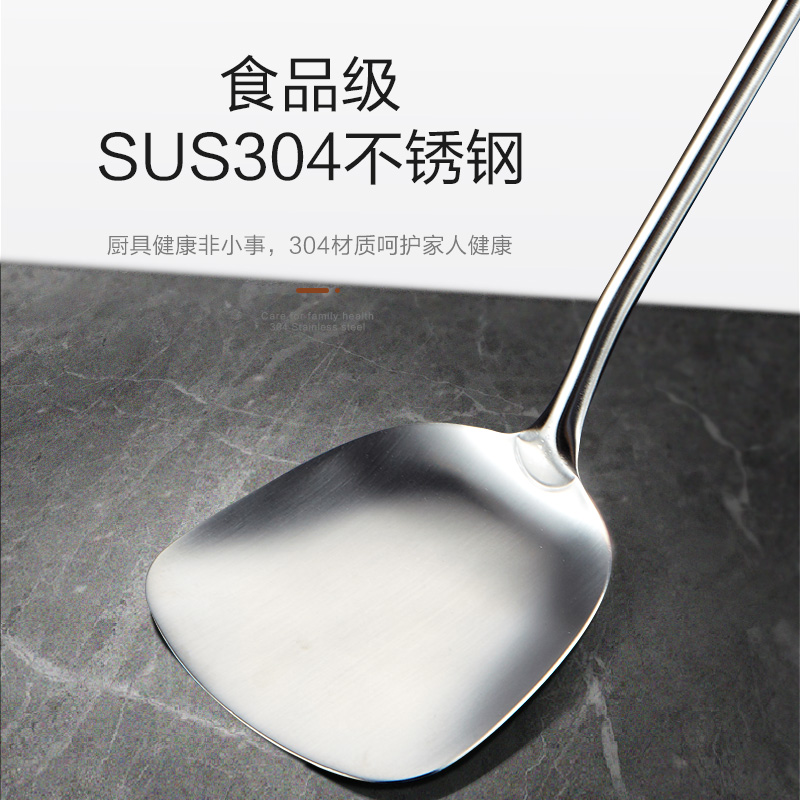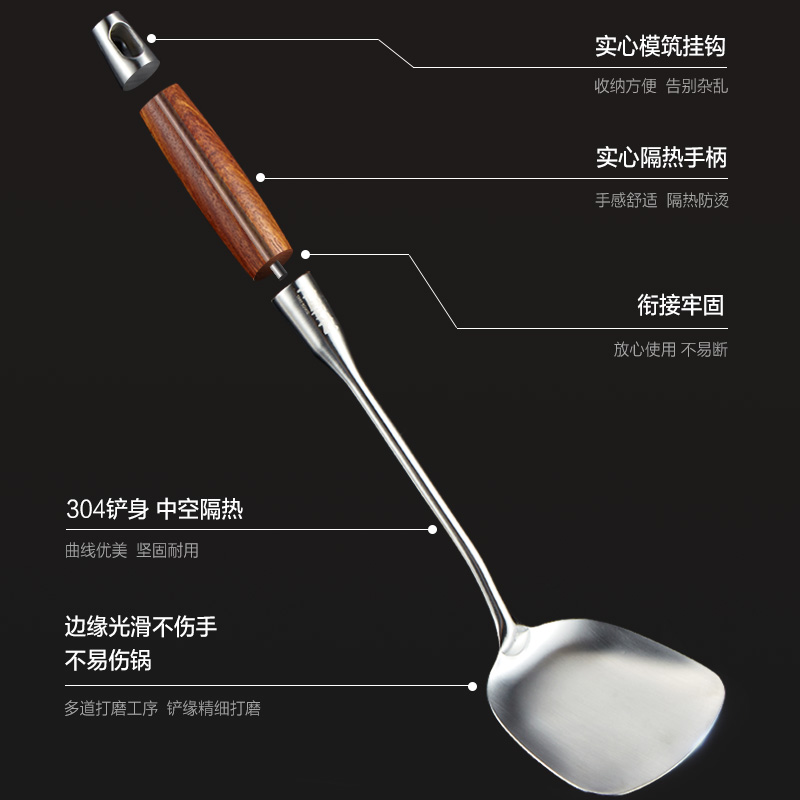 Ma Yaxuan 304 stainless steel shovel thick fried shovel kitchen household wooden handle long - handle extended