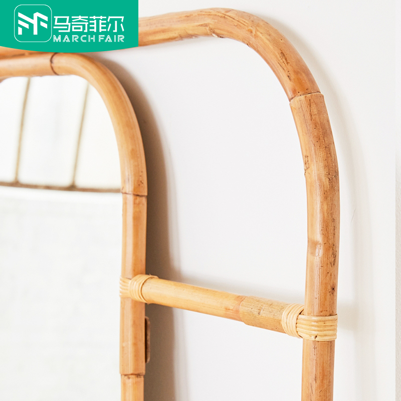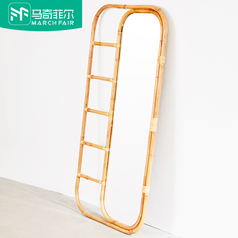 Nordic full-length mirror full-body floor-to-ceiling mirror rattan full-length mirror makeup mirror with frame Indonesian rattan wood homestay furniture - Taobao