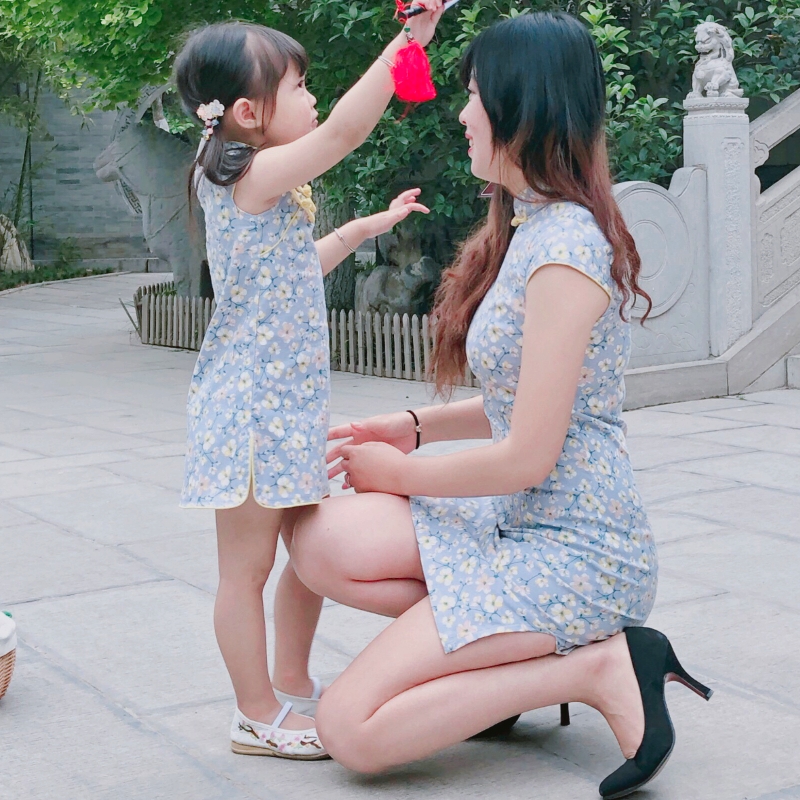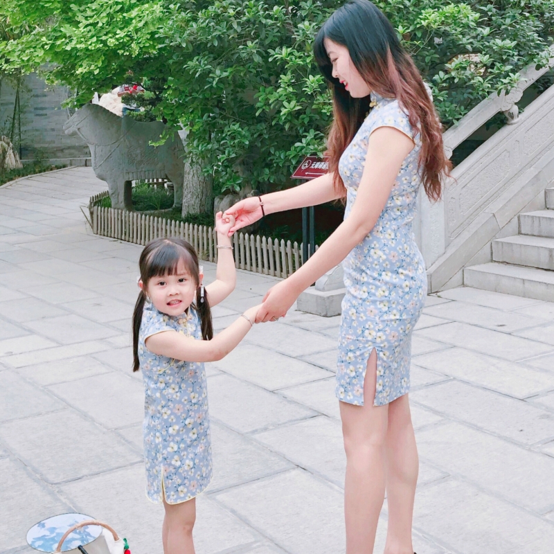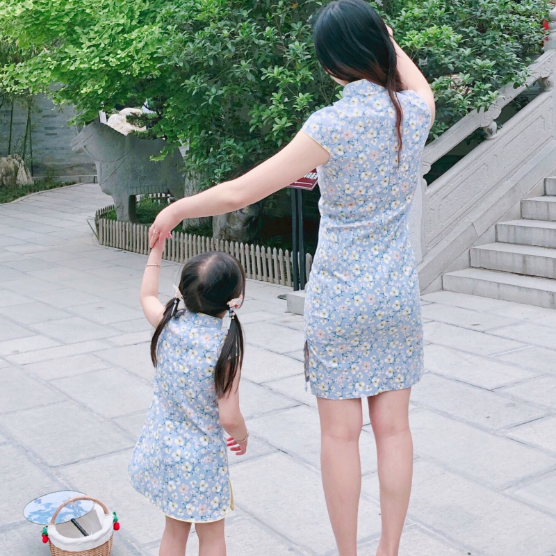 Qipao pro-sub-dress Summer short sleeves Chinese Wind Mother women's dress Flag gown Improved girl Han clothes Baby Liandress The dress foreign