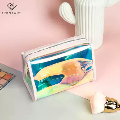 phintory cosmetic bag Portable female net red colorful laser simple transparent girl heart waterproof toiletry bag