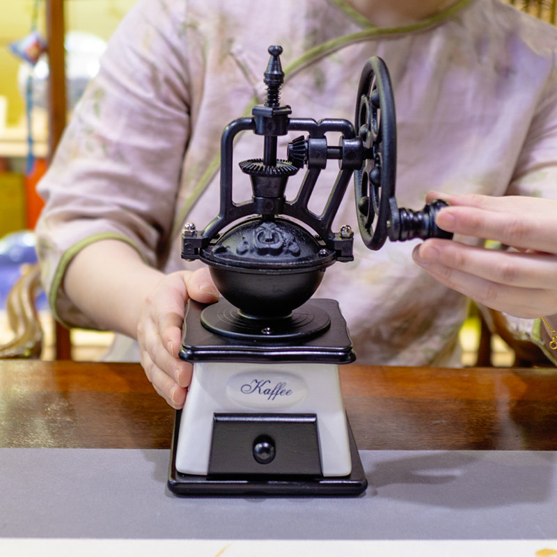 Retro manual hand coffee grinder Coffee grinder Household small ceramic cast iron ornaments prop grinder