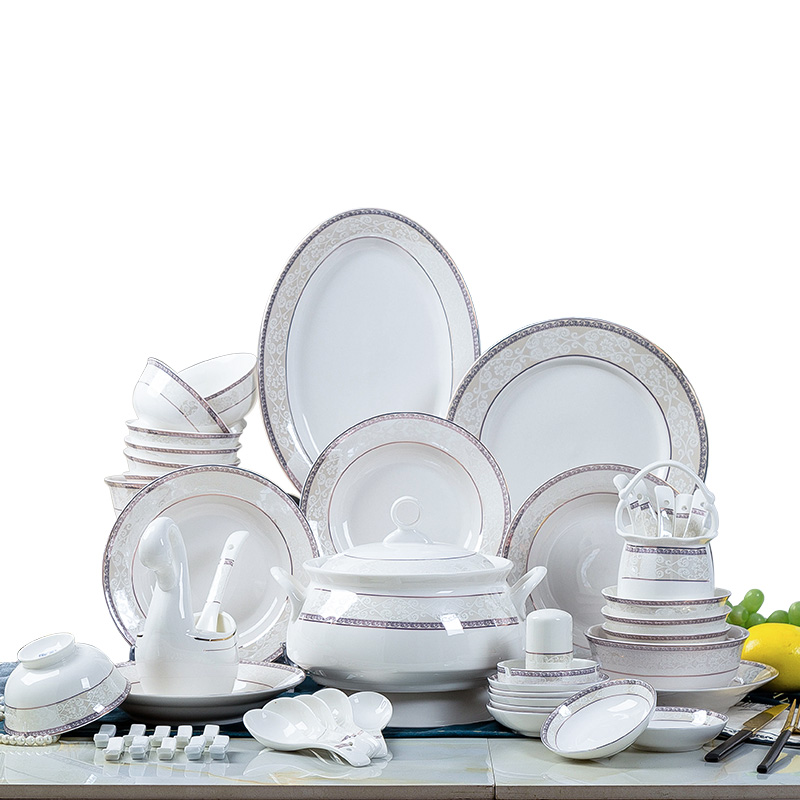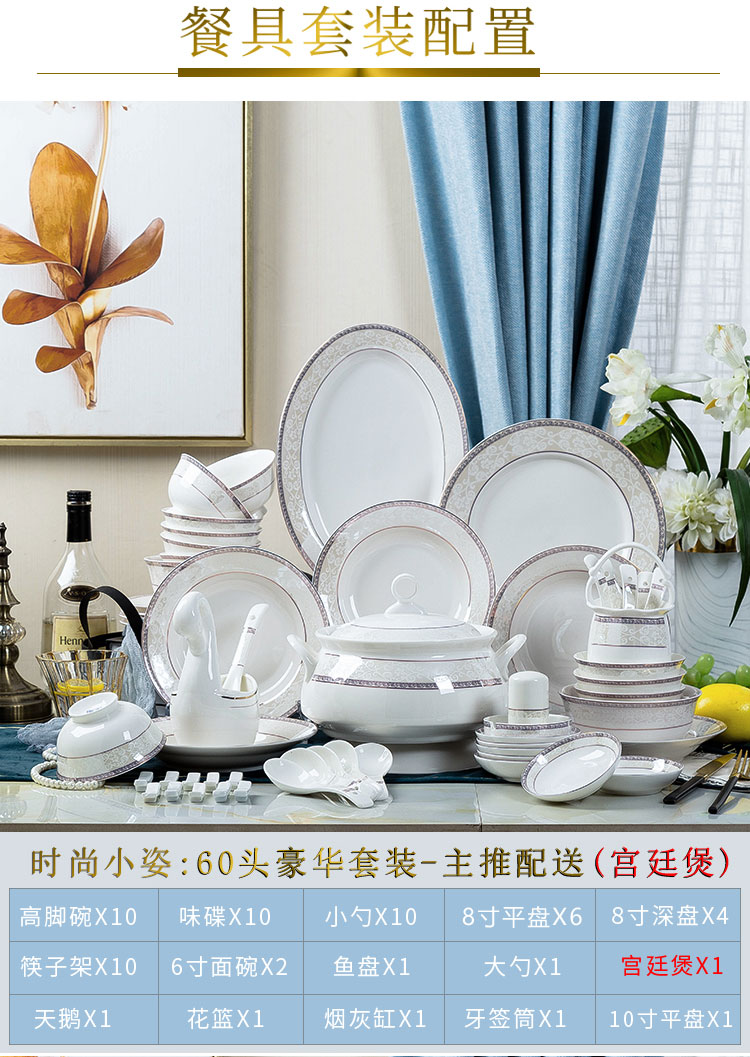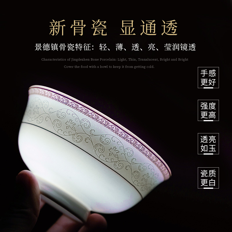 Dishes set household combination Chinese bone china tableware household rice bowl with instant noodle bowl deep plate flat plate fish plate soup bowl plate