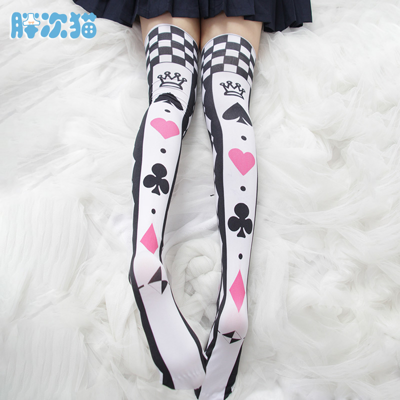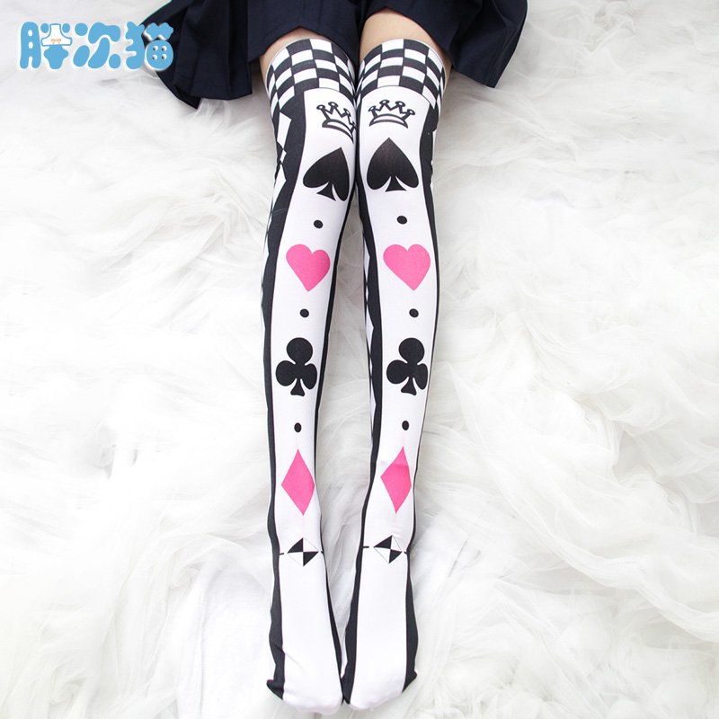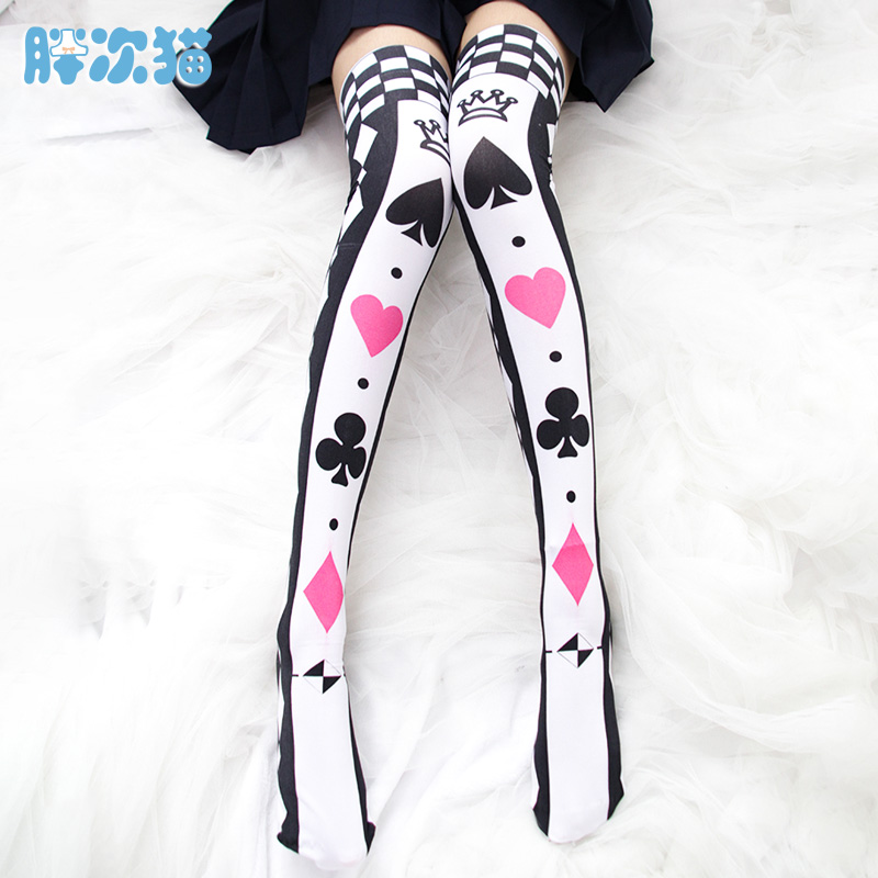Original playing card printing knee socks Japanese girl velvet high socks stockings