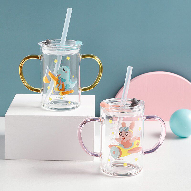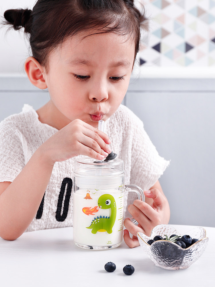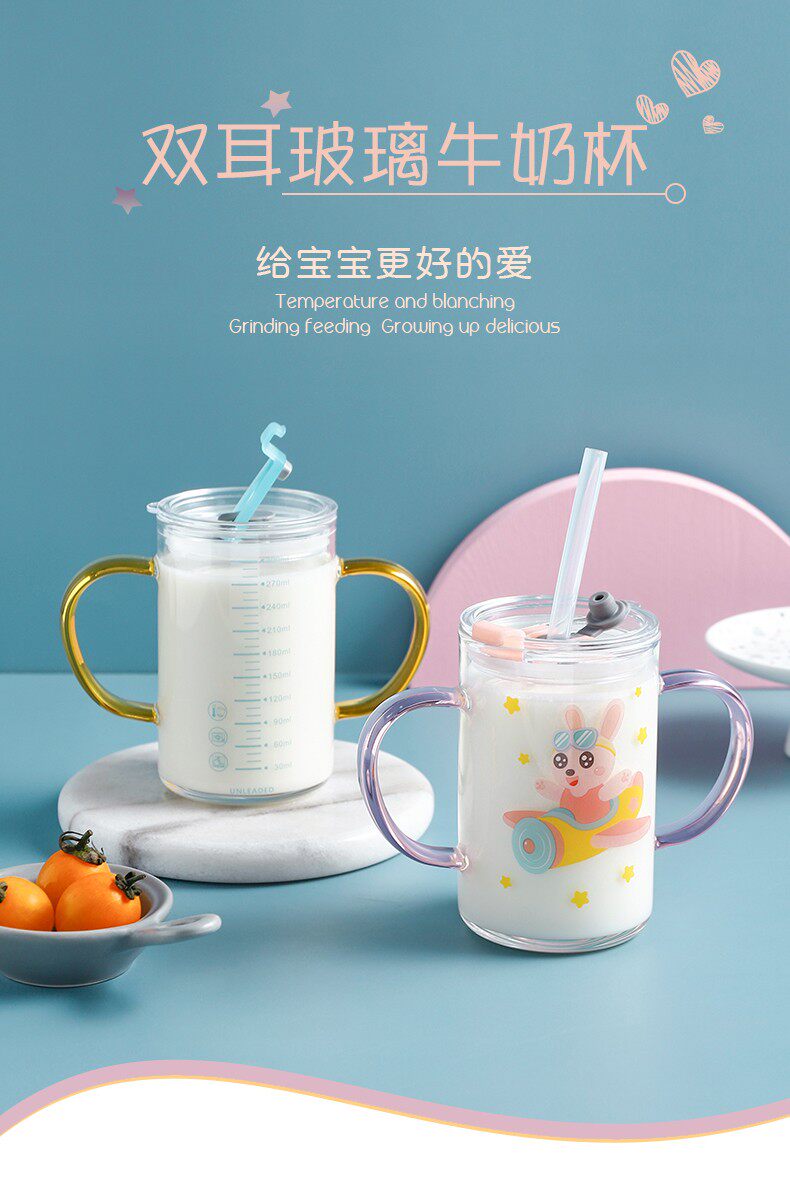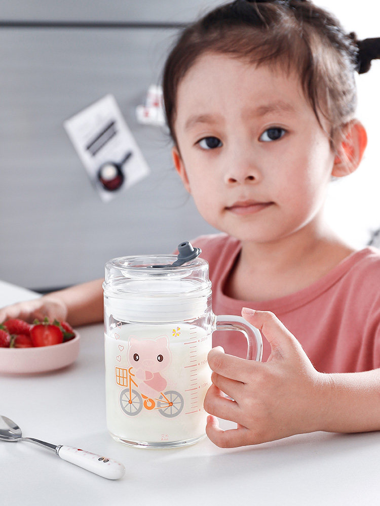 Cartoon children's milk cup with scale anti-fall ppsu double milk cup suitable for microwave breakfast home
