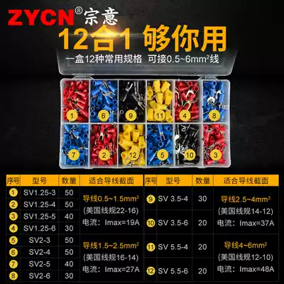 Zongyi terminal Fork type U-shaped terminal Copper core insulated terminal wire nose 12 kinds of SV set cold-pressed terminal