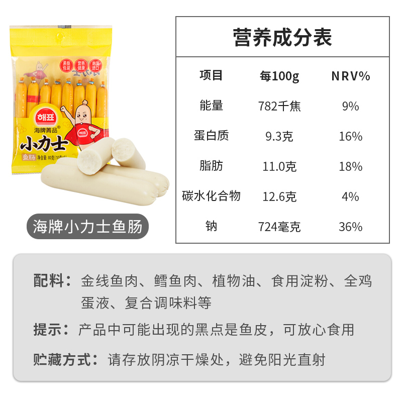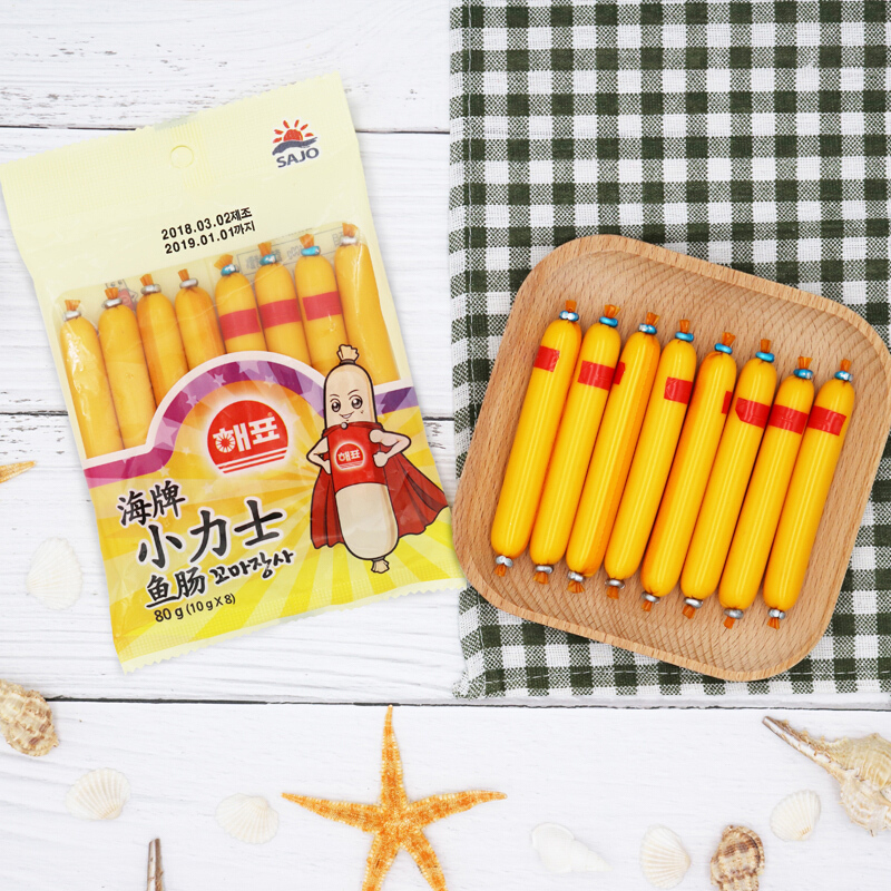 South Korea imported sea brand small lux children's fish sausage 10g * 8 original fish ham sausage cod sausage 80g snacks