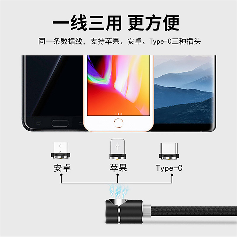 Elbow magnetic attraction data line Quick charge three-in-one suitable for Apple Android OPPO Xiaomi Huawei VIVO universal