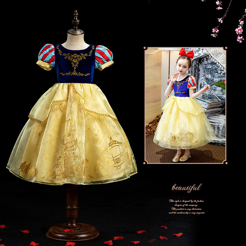 White Snow Princess Dress Girl Foreign Dress Birthday Gown Dress Fluffy Dress Child Skirt Ice Chic Edge Princess Dresses