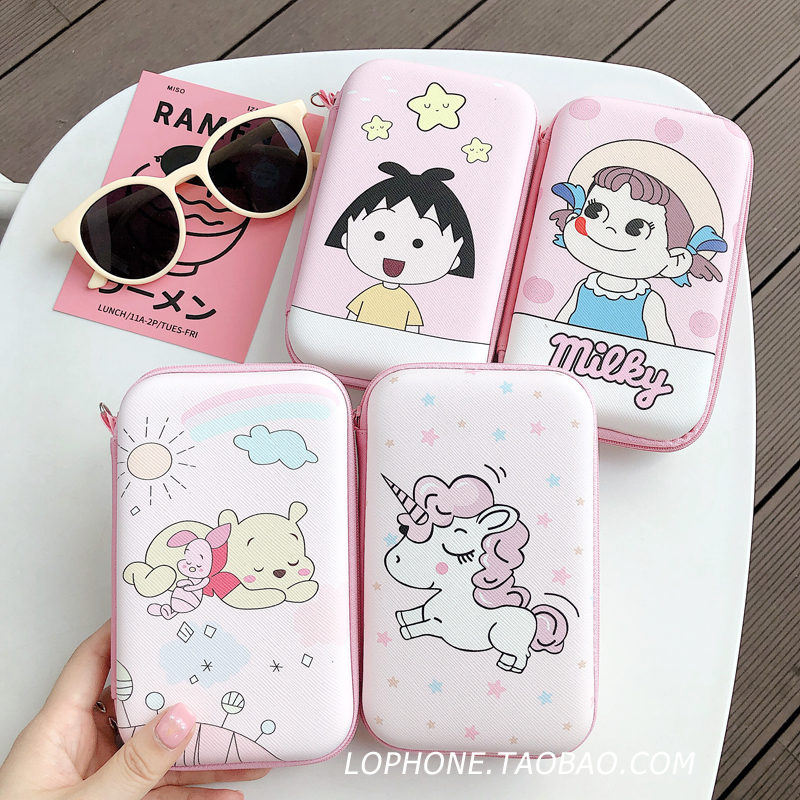 Japan and South Korea cute portable hard disk power pack data cable charger storage box bluetooth headset change cartoon anti-fall