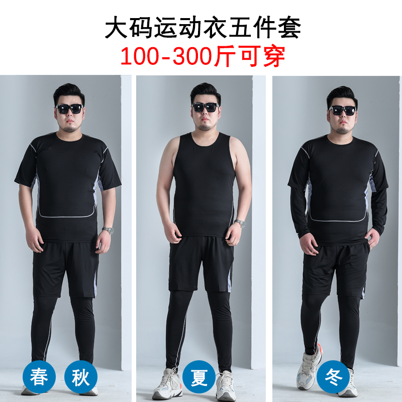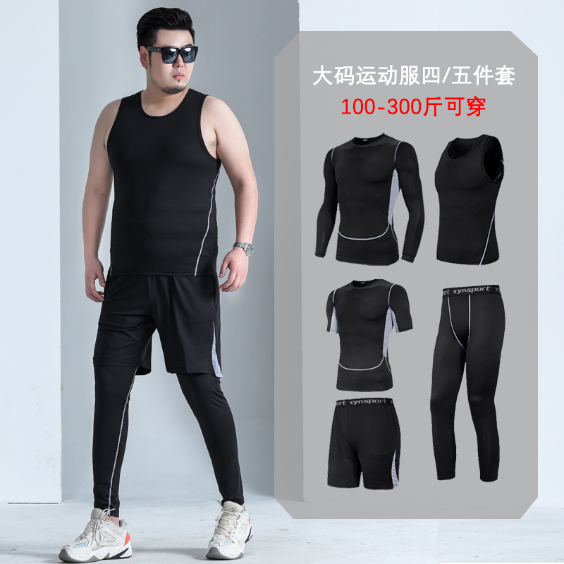 Fertilizer plus size fitness clothes men's suit sports tights quick-drying spring and summer basketball equipment running training clothes