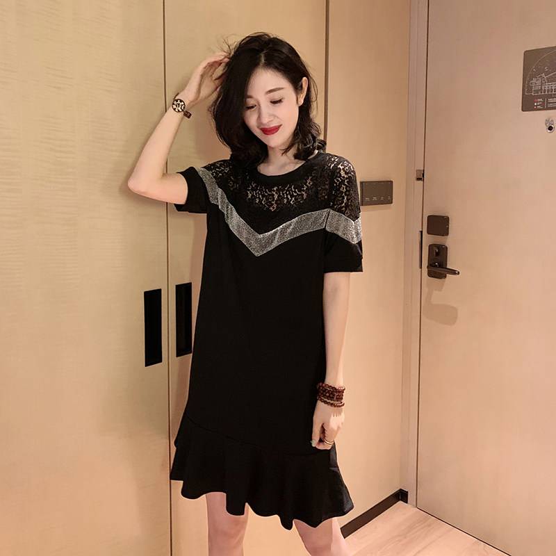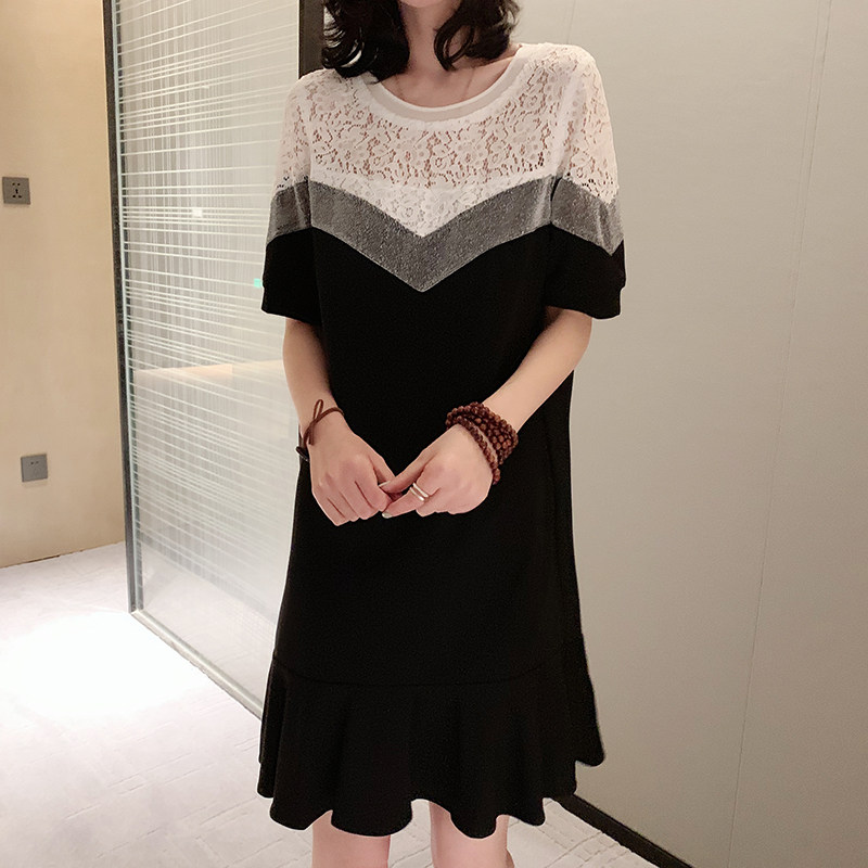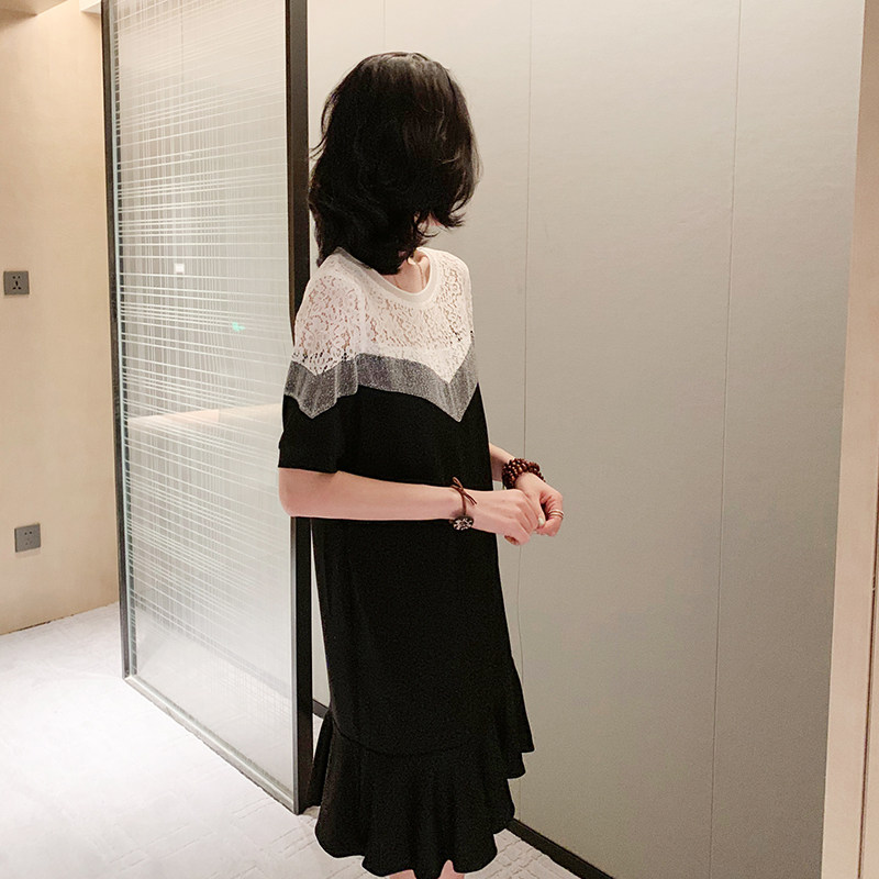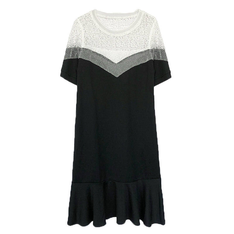 Black and white mosaic dress summer Europe station 2021 New European fashion foreign fashion fake two pieces lace fishtail skirt women