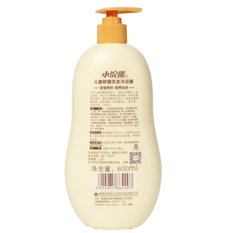Little raccoon children's shampoo and shower gel two-in-one 3-12 years old middle-aged and big children's wash and care boys and girls no tears shampoo