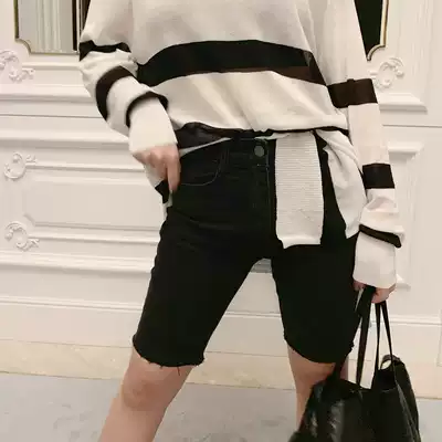 Pregnant women denim shorts 2021 summer new pants straight tight stretch thin pregnancy five-point five-point pants thin section