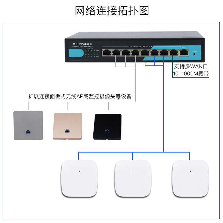 Full Gigabit 9-Port routing three-in-one POE powered WIFI ceiling AP into wall 86 wireless AP panel WIFI