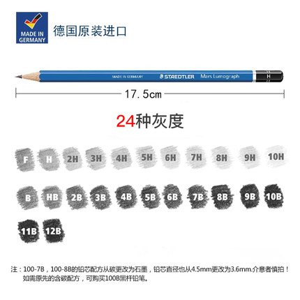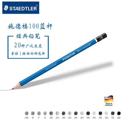 Germany STAEDTLER Shi De Lou sketch pencil 100 blue pole professional drawing and painting pencil 2h-8b art