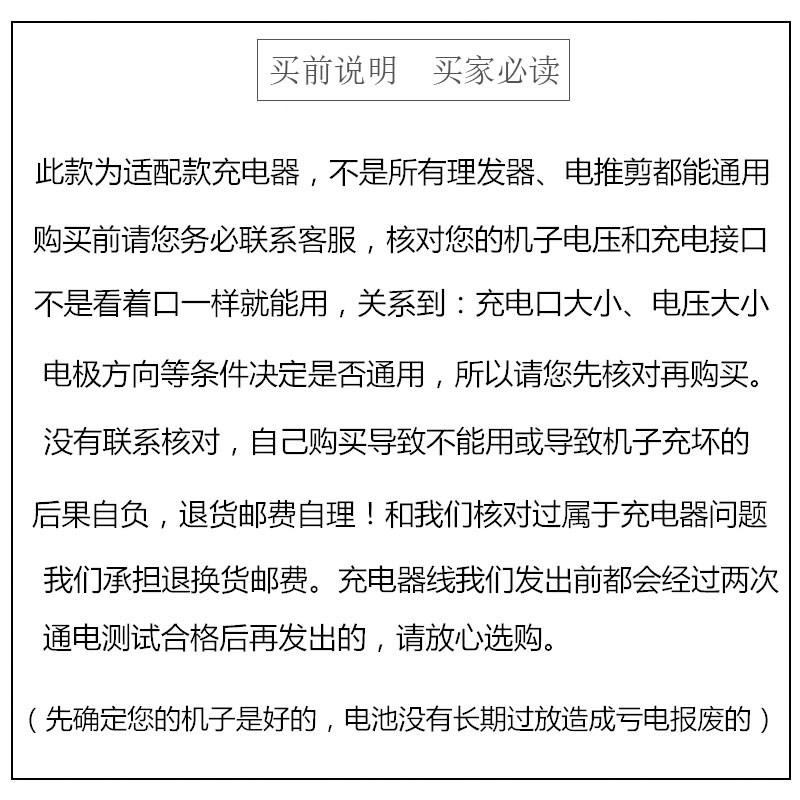 Love Beauty Electric Push Cut Shaving Hairdresser RFCD-A3 RFCD-Q7 9566 Charger Power Cord Accessories