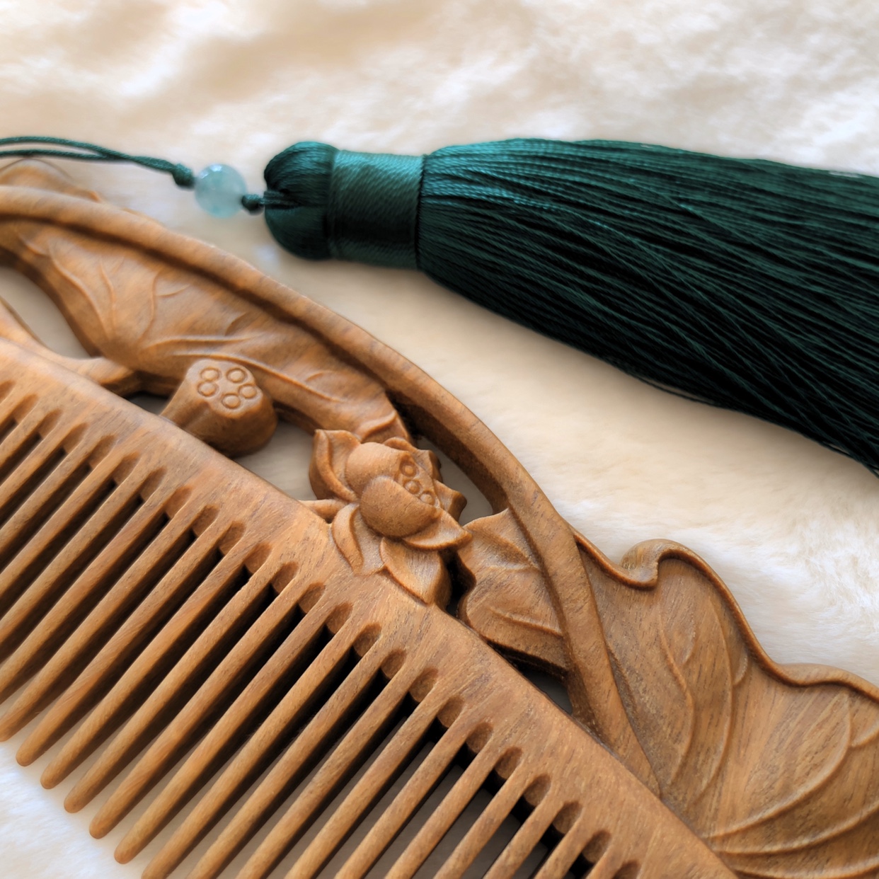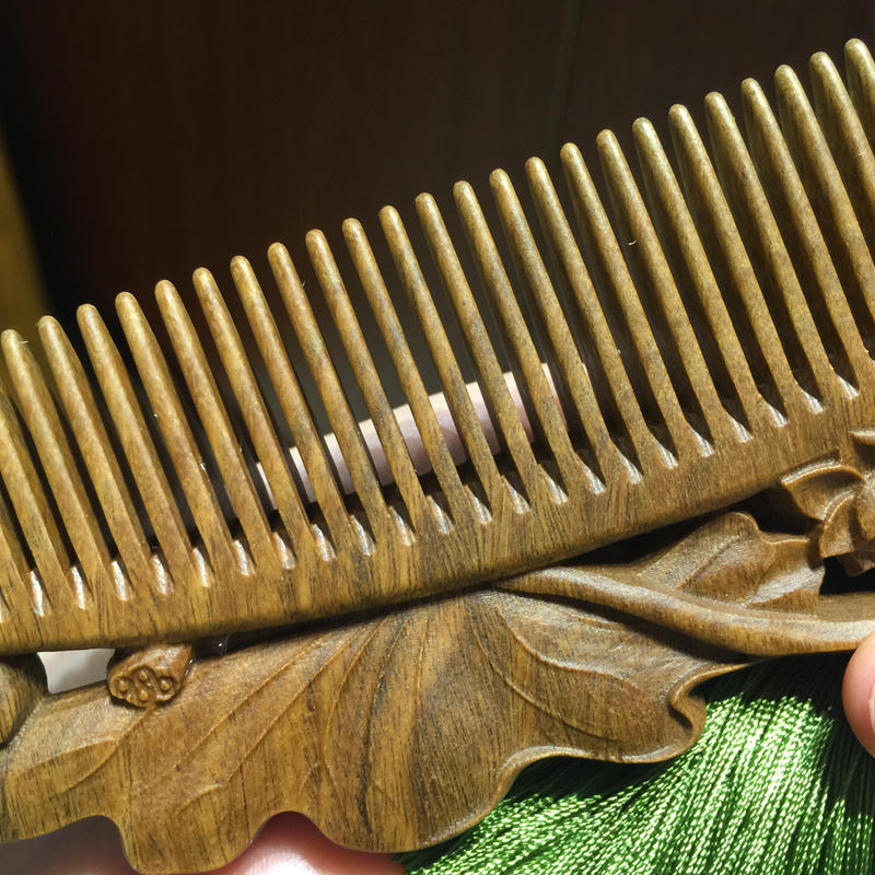 Forfull and Beauty Natural log Antistatic engraving lotus leaf Lotus Leaf Recommended Chinese Style Ancient Wind Green Sandalwood Comb