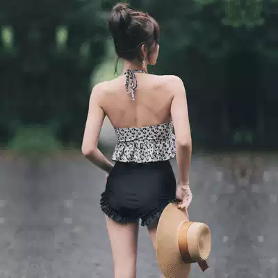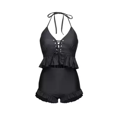 Kellant wooden ear two-piece high waist bikini swimsuit small chest gathered high waist thin belly cover belly hot spring swimsuit women