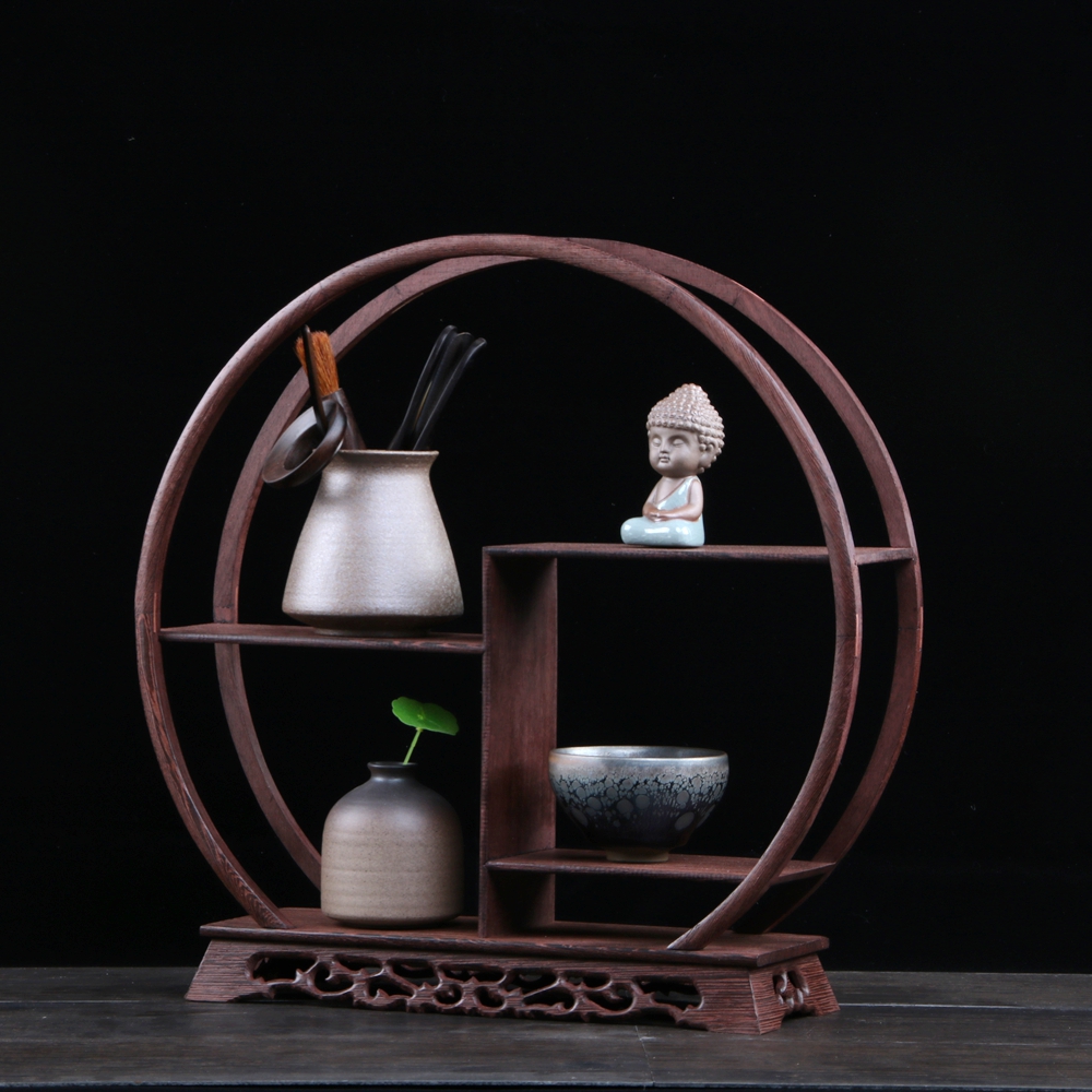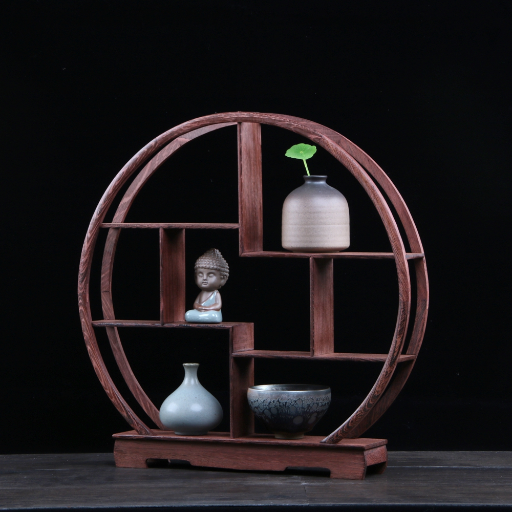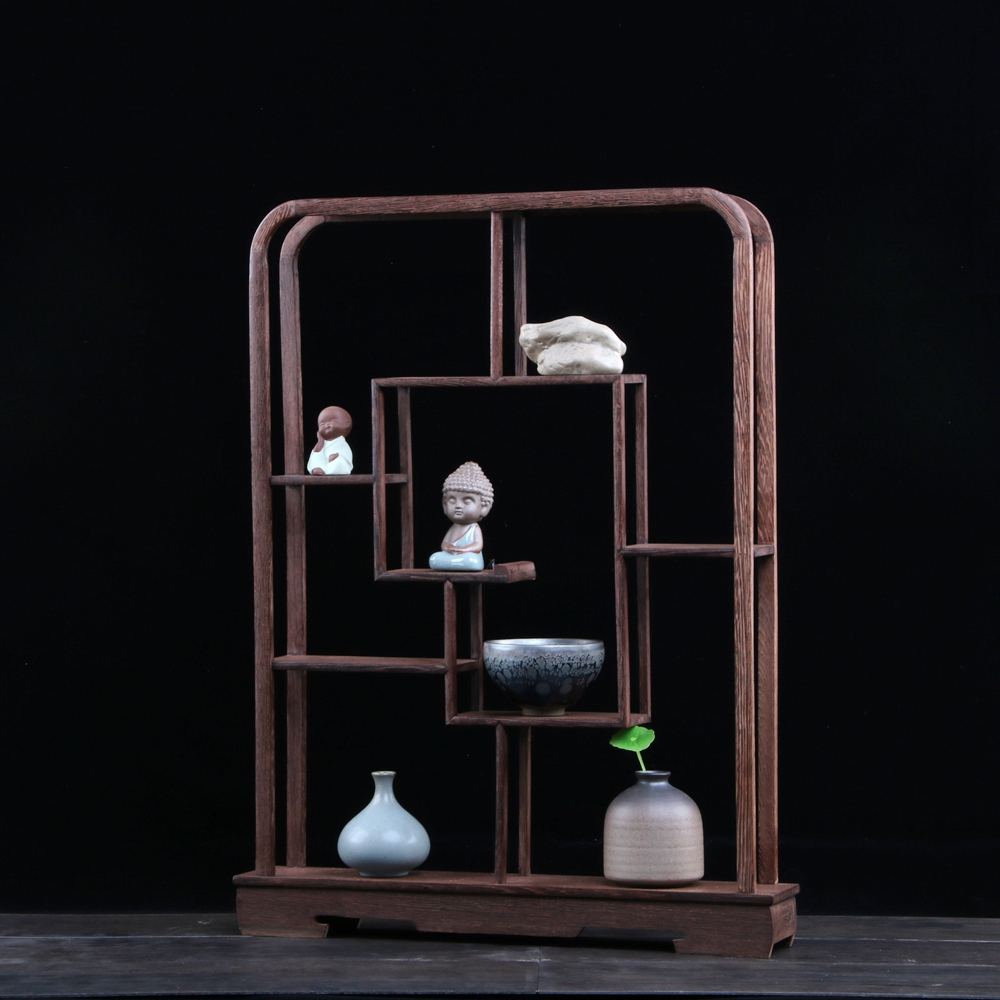 Chicken Wings Wood Small Bogu Frame Solid Wood Small Multi-Treasure Teacup Teapot Teapot Pendulum rack Chi Stone Head Antique Rack