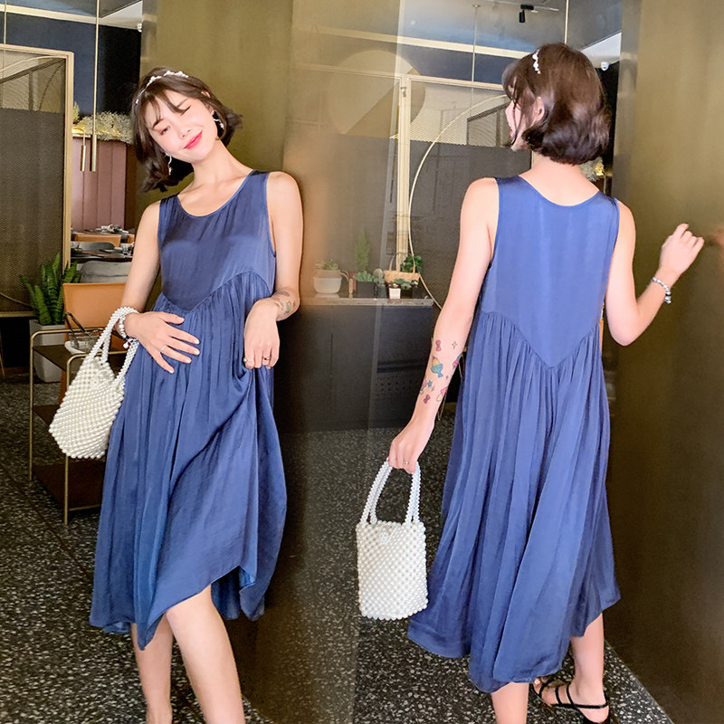 2022 Pregnant Woman Vest Skirt Summer Fashion surrogacy Mom Loose Casual Long Version Over Knee Silvery Sleeveless Dress