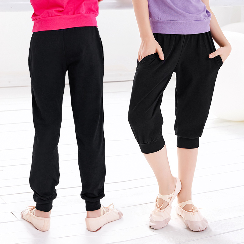 Children's Roperin Pants Black Seven-Pants Boy Pants Summer Sports Pants Girl Dancing Long Pants Pure Cotton Casual Pants