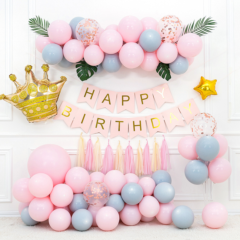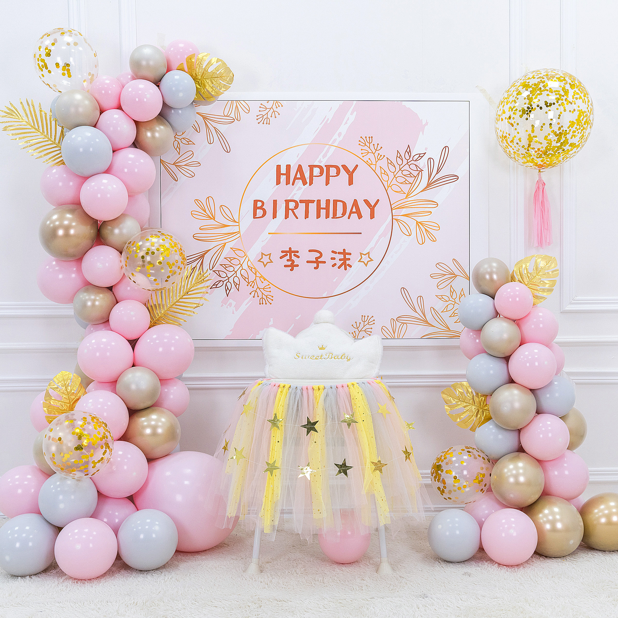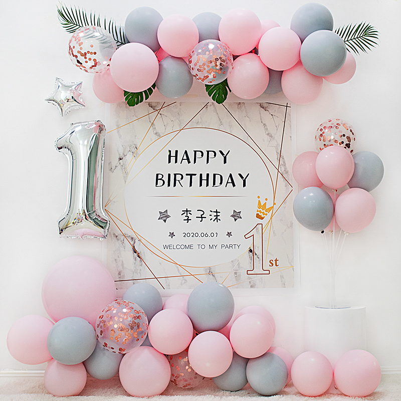 Princess girl baby 1st birthday decoration scene children theme balloon lying on the background wall poster 2