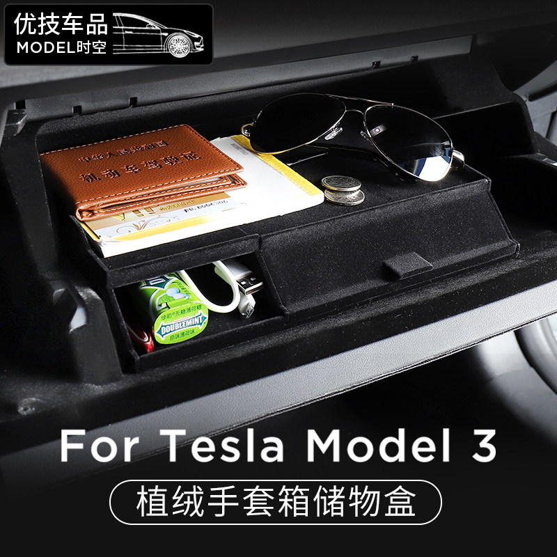 Suitable for Tesla Model 3 co-pilot glove box storage box Modely storage box interior accessories