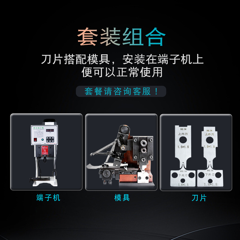 OTP horizontal and straight mold blades are specially customized, one piece of SH1 0 terminal blade, one piece of 1 25 terminal blade, one piece of XH2 54 terminal blade, one piece of SM terminal blade, one piece of VH3