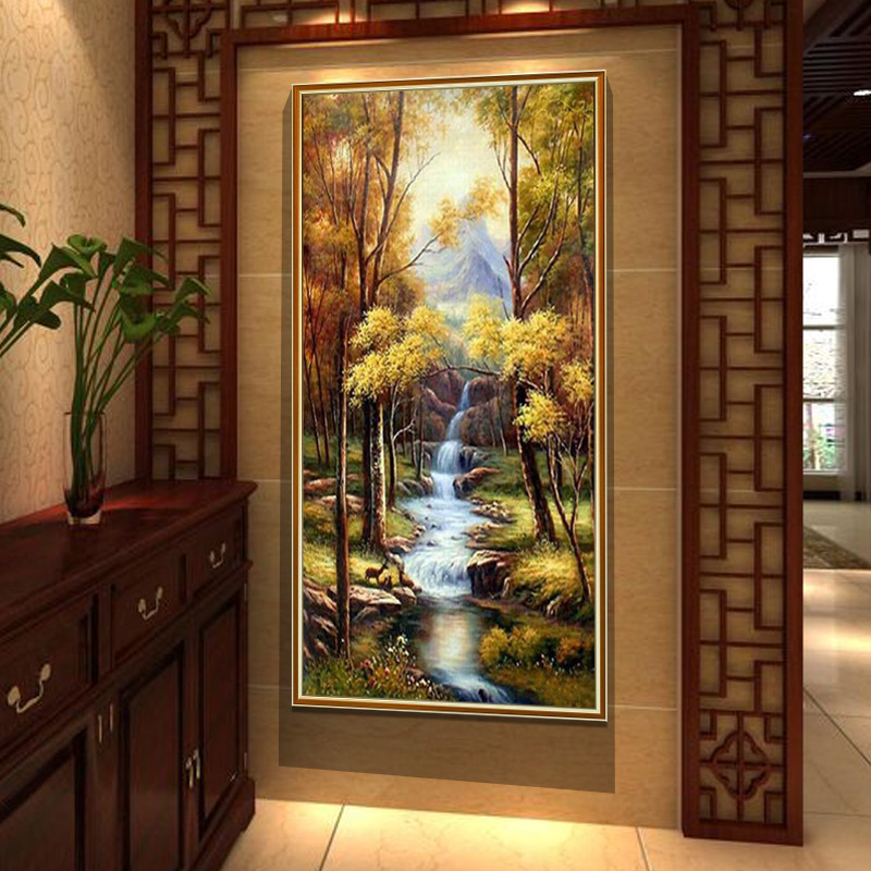 Eurostyle oil painting hand painted Xuanguan decoration painting Living room Aisle Wind Landscape Painting Corridor Wall vertical version of hand landscape hanging painting