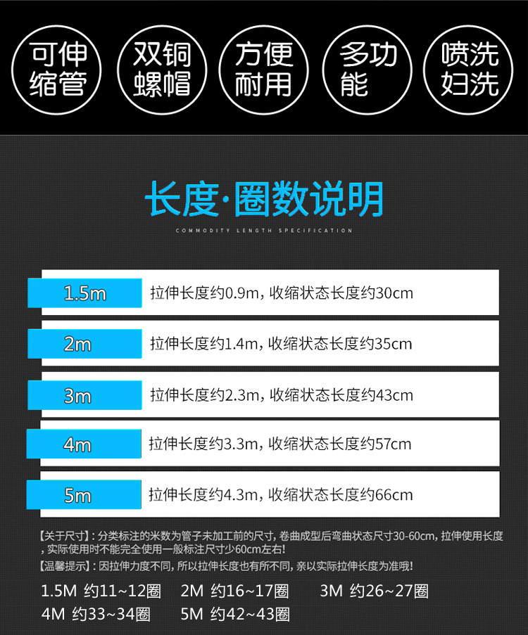1 5 2 3 5 m shower nozzle hose spring woman waster spray gun water inlet pipe telephone line pipe telescopic shower head