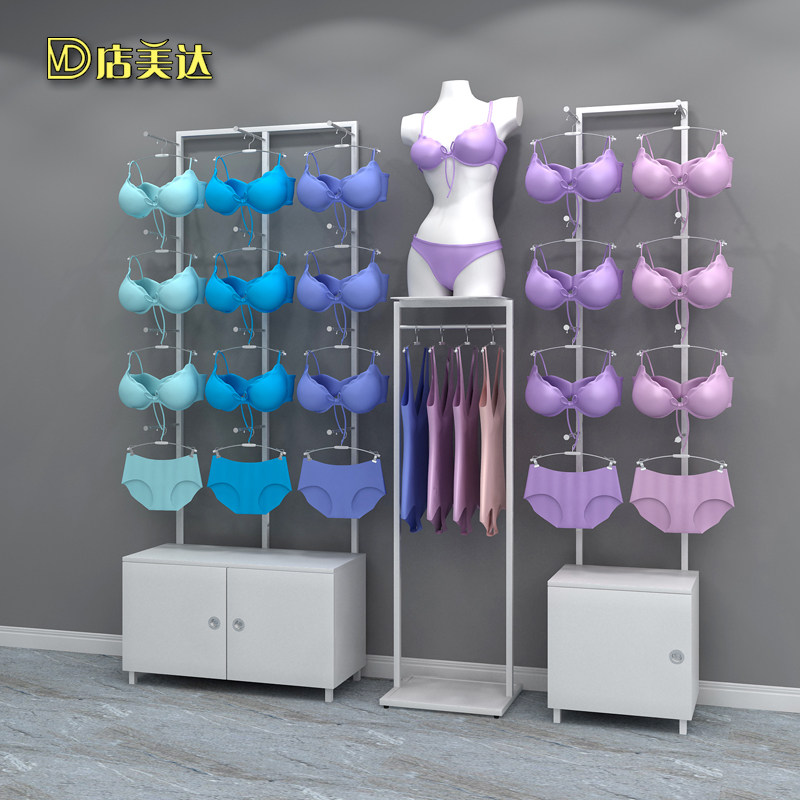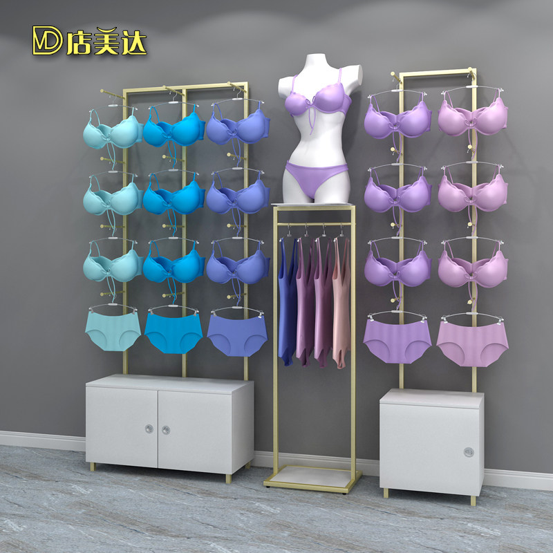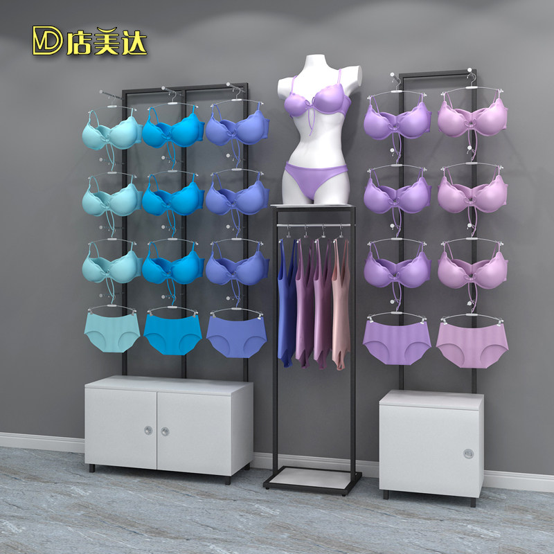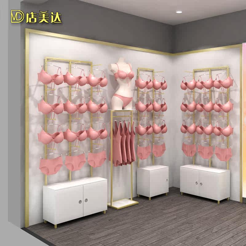 Lingerie store shelves wood grain wrought iron lacquer panties rack bra against the wall display cabinet frame model shelf sleeping hangers