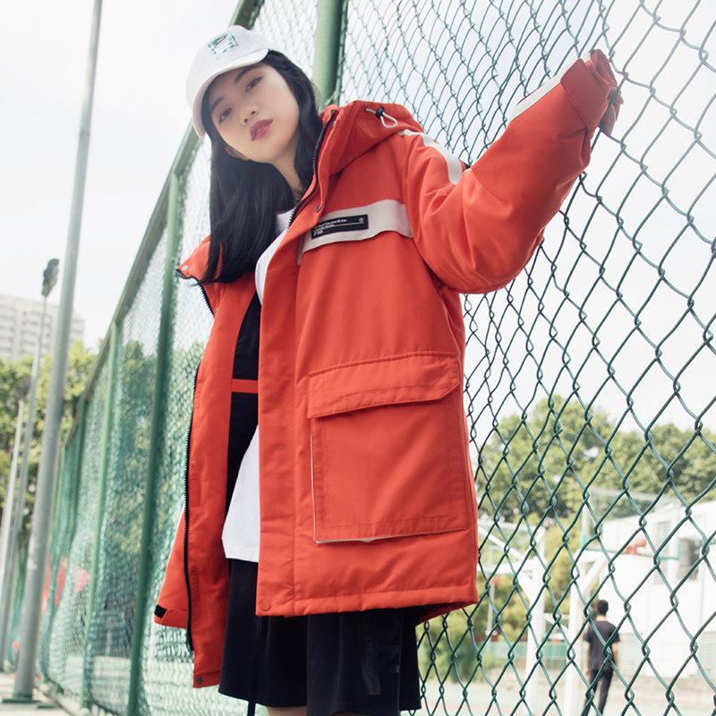 Snow medium fly 2021 autumn and winter new warm and practical strike color weave with cap stereo large-mouth bag tooling down clothing tide