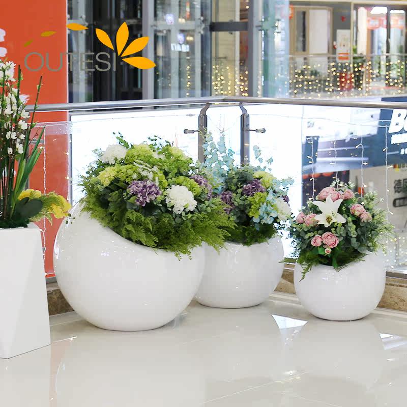 Glass Fiber Flower Pot Combo Mall Creative Beauty Chen Round Florator Square Landing Round Flower Altar Hotel Vase Custom