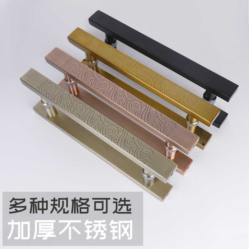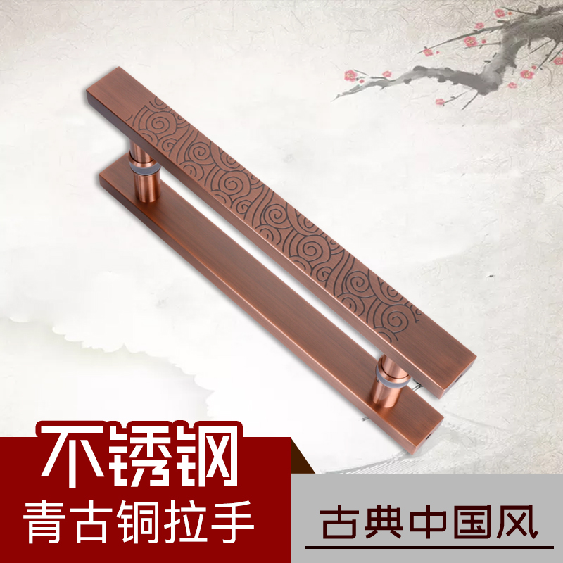 Chinese style retro luxury glass door handle Door carving Xiangyun KTV elegant black red bronze now wooden door handle