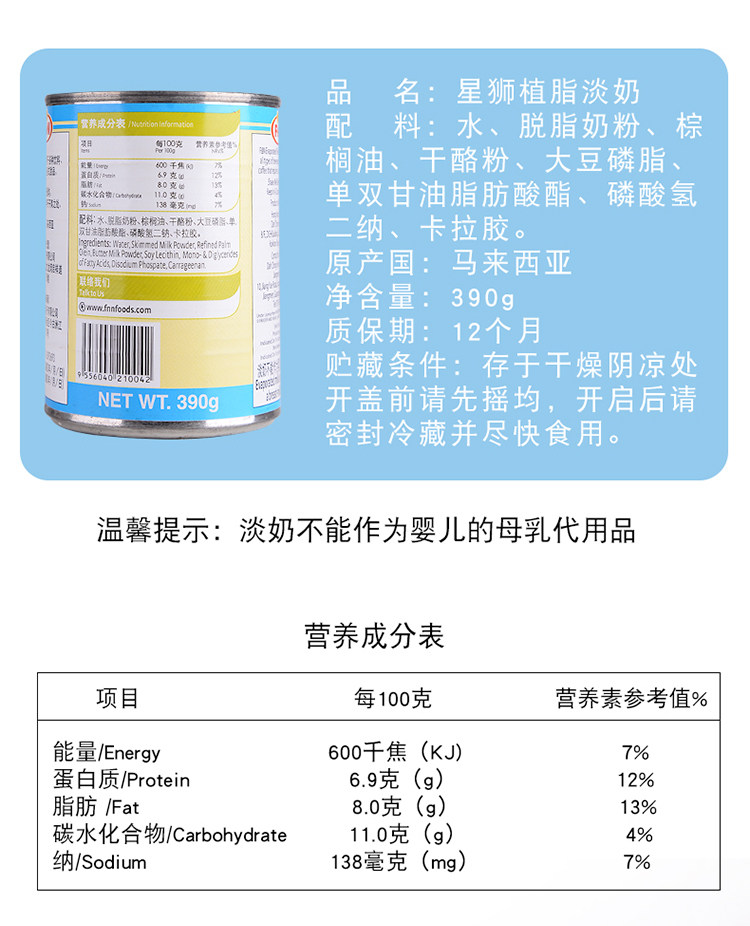 Malaysia imports FN star Lions Plant Fat Light Milk 390g Modul Milk Milky Tea Coffee Sweet cooking Materials