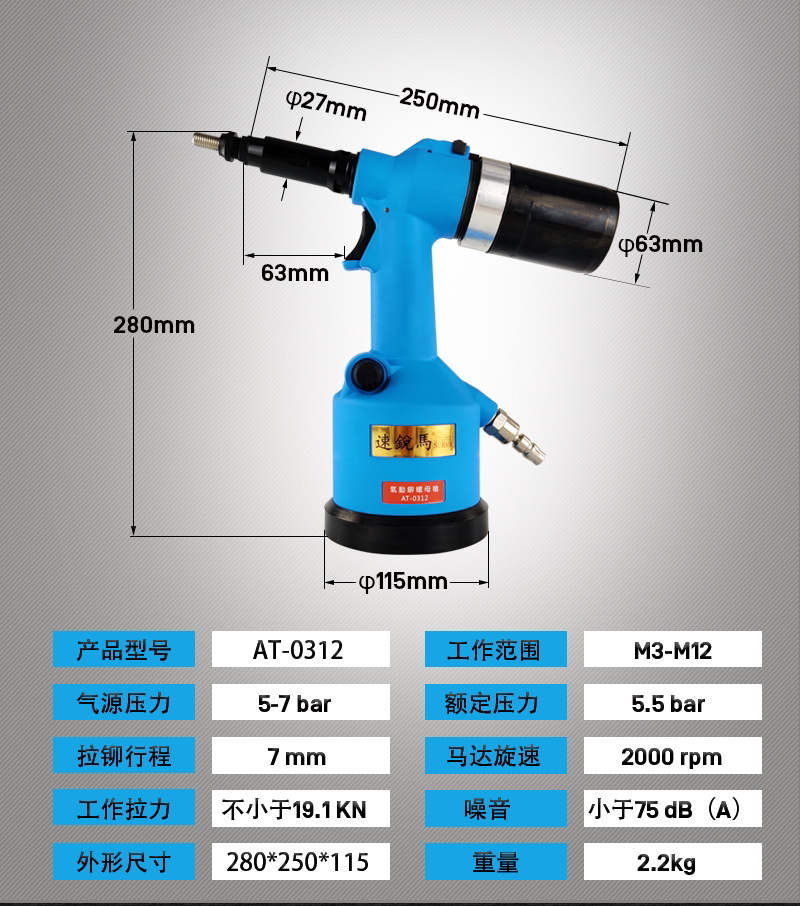 Fully automatic pneumatic pull riveting nut gun pull mother gun pull riveter pull hat gun M3-M12 hydraulic pull nut gun tool