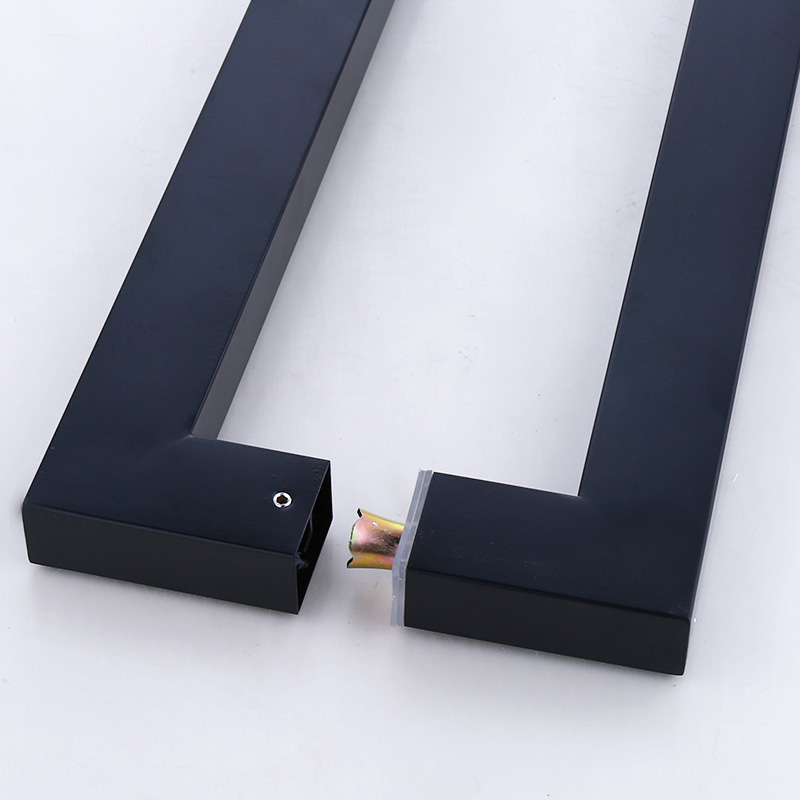 Thickened stainless steel glass door handle square pipe matt black ground spring door large handle wooden door handlebar with adjustable length screw-Taobao