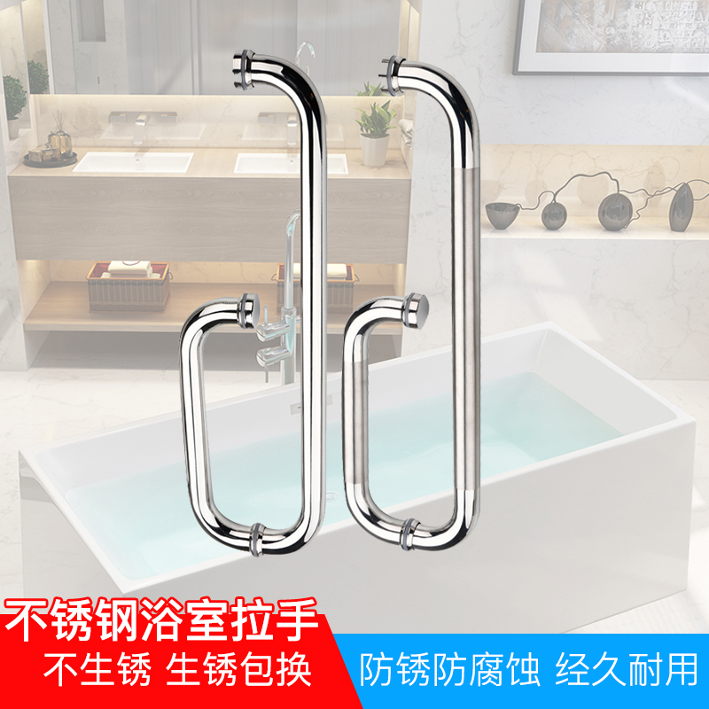 Stainless steel bathroom glass door handle dressing room push-pull modern simple shower room sliding door L-shaped door handle 304