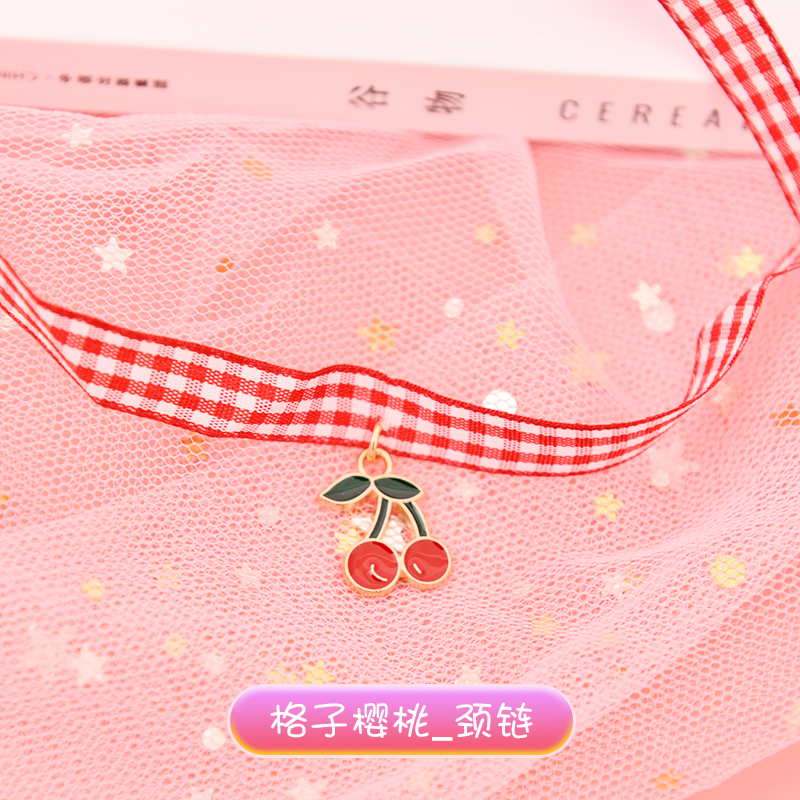Pink lattice - cherry necklace red checkered - cherry necklace black checkered - cherry necklace