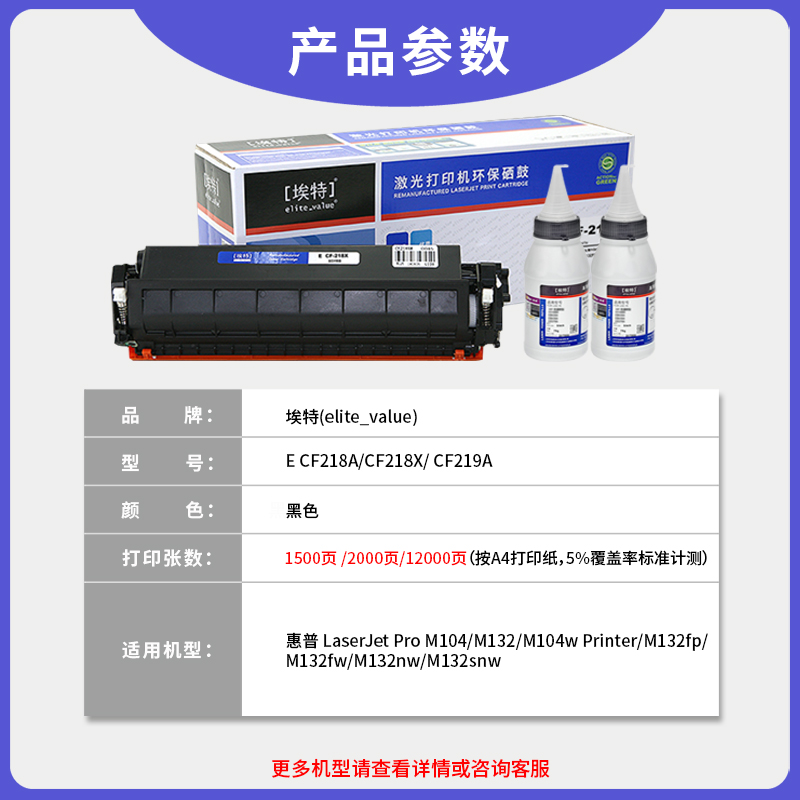 Ette CF218A with chip standard powder box EtCF218X with chip large capacity easy to add powder box Send 2 bottles of powder EtCF219A with chip drum Ete C