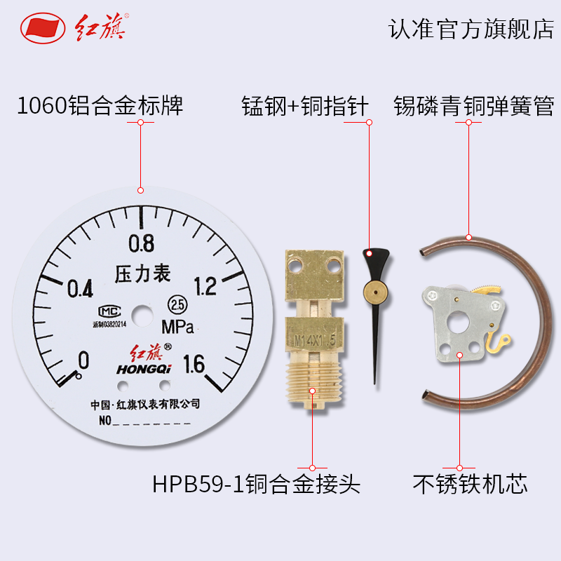 Red flag Y-60 radial pressure watch 0-1 6 0~2 5 pneumatic pressure gauge precision high vacuum negative pressure gauge