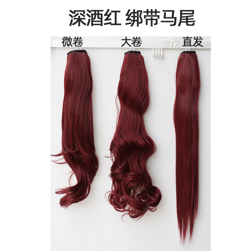 Micro-curly horse tail 50cm-dark wine red micro-rolled horse tail 50cm-dark wine red large curly horse tail 50cm-dark wine red large curly horse tail 50cm-dark wine red straight hair horse tail 55cm