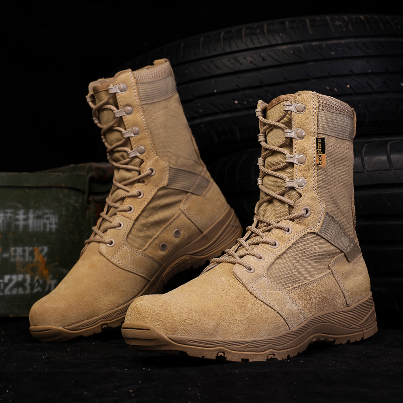 Flying Fish Combat Training Boots Men's High-Top Desert Boots Men's Summer Ultra Light Outdoor Hiking Boots Tactical Martin Boots Men