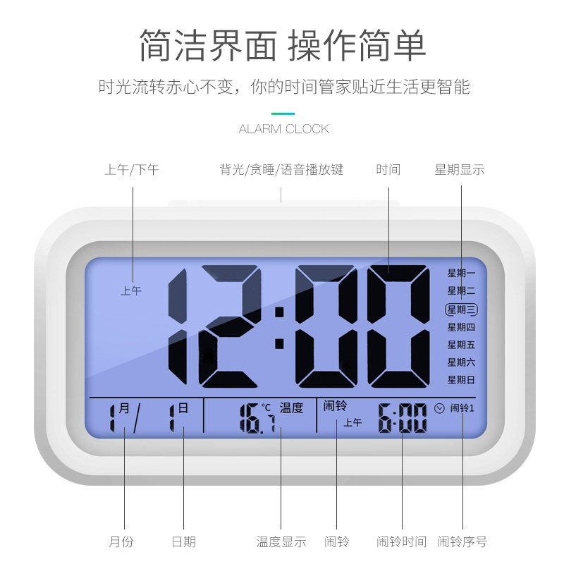 Premium black temperature three sets of alarm clocks Automatic luminous time] Premium elegant white temperature three sets of alarm clocks automatic luminous time] Premium sky blue temperature three sets of alarm clocks