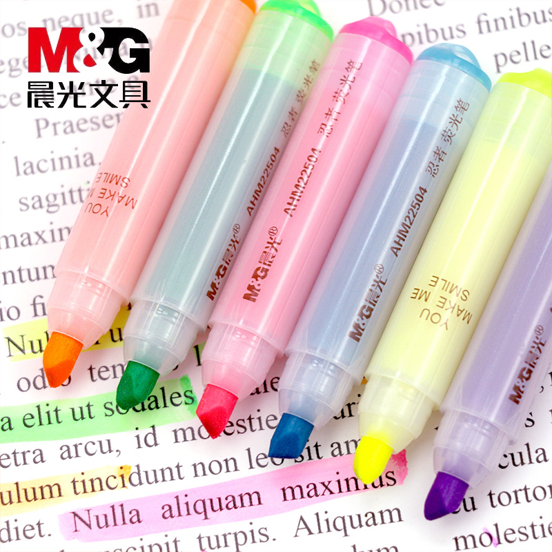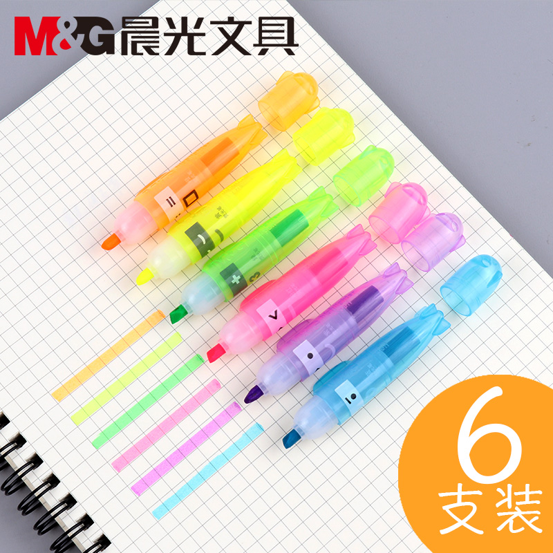 Morning light mini fluorescent pen Large capacity marker pen flavor rough stroke key set Primary school students light color marker pen size illustration pen thickness Color silver light pen marker pen Children's gifts