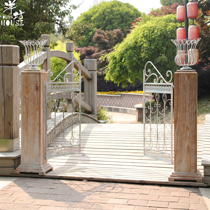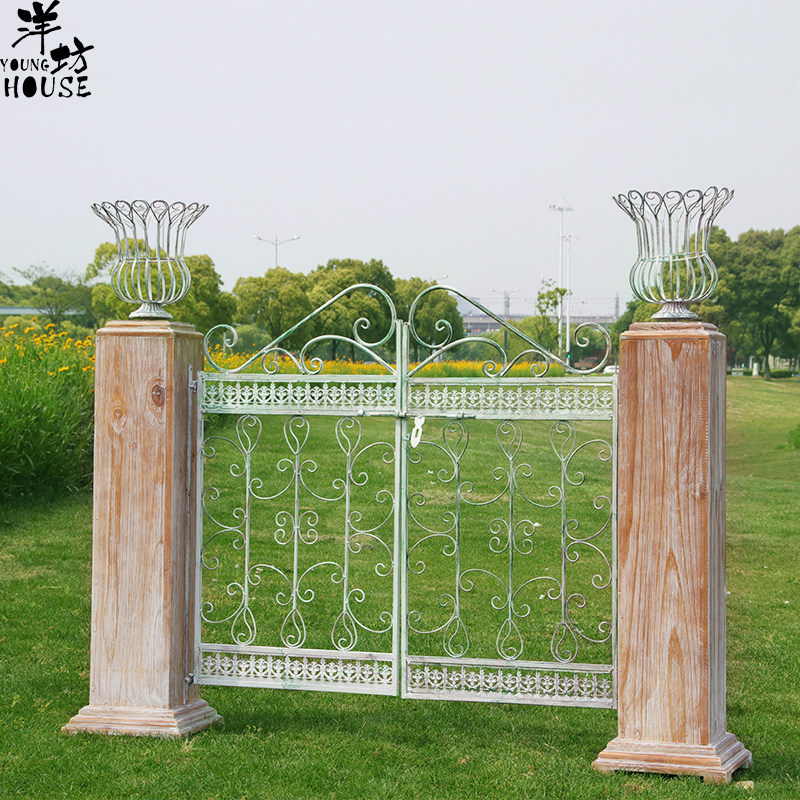 Yangfang European-style retro garden door iron door solid wood courtyard decorated with outdoor iron art as old anti-corrosive fence door villa-Taobao
