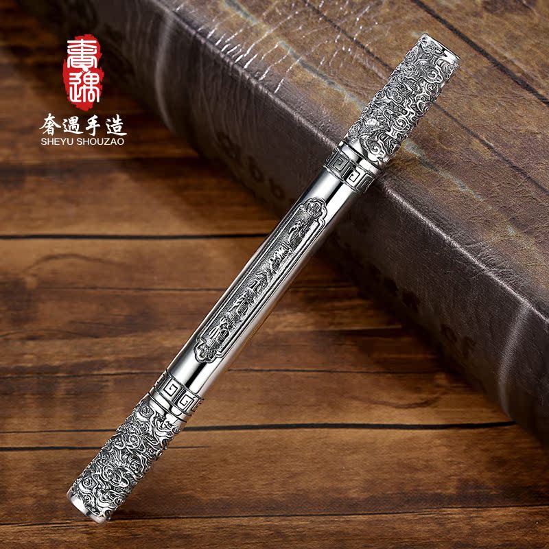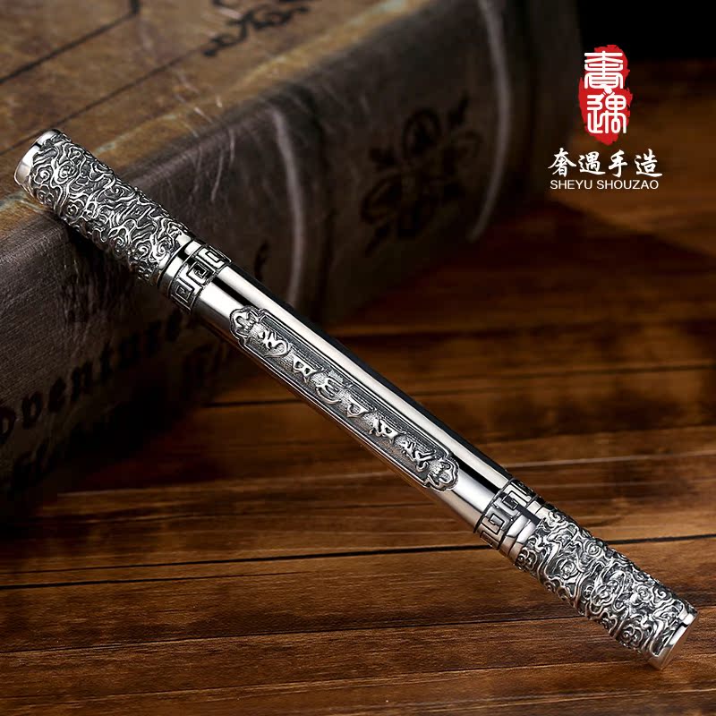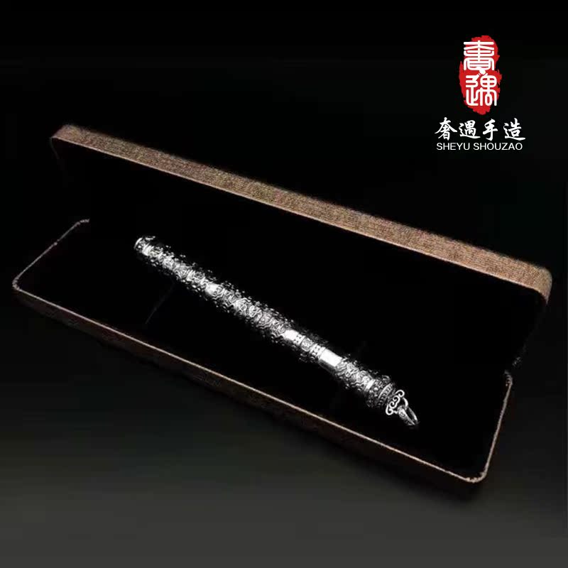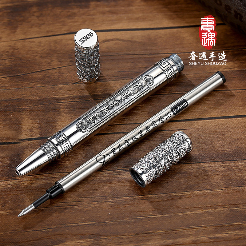 Sheyu Xiangyun S925 silver sterling silver pen neutral pen six words true words golden golden stick metal rod business signature pen craft
