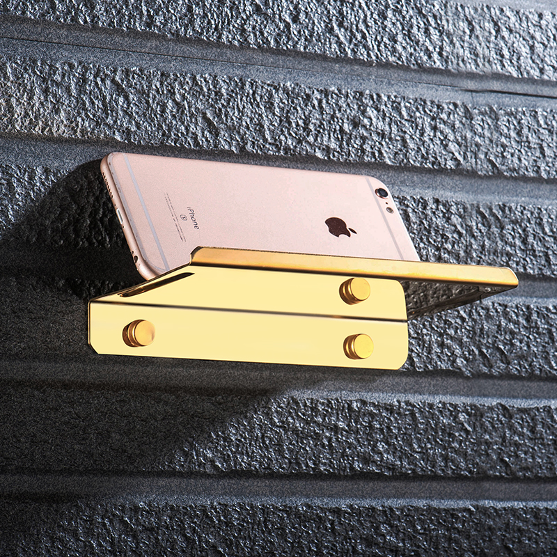 Makeup Room Mobile Phone Rack Free of perforated Stainless Steel Golden Washroom Toilet Phone Rack Bracket Public Shelve